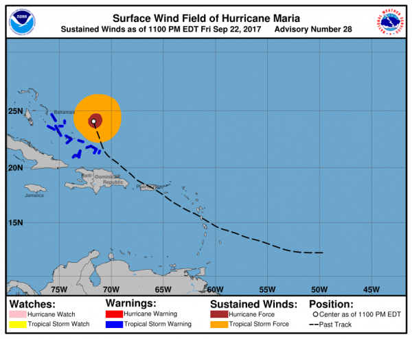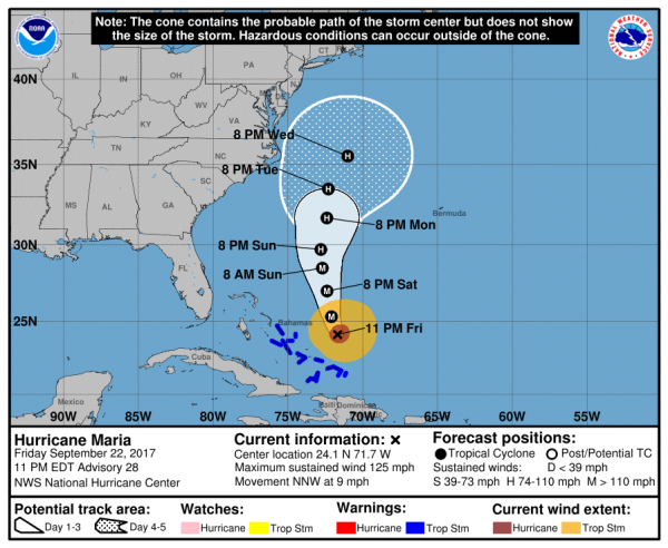 Der Hurrikan befindet sich zur Zeit auf dem offenem Meer und ist als Kategorie drei eingestuft. Wahrscheinlich wird er wieder an Kraft zunehmen können, bevor er auf die Bahamas trifft.
