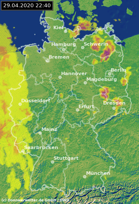 Radarbild von Mittwoch, 29.04.2020 um 22.40 Uhr