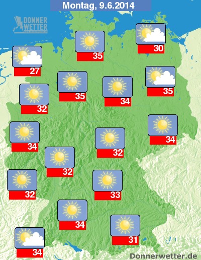 Am Pfingstmontag und am Dienstag ist das Schwitzen unter anderem auf den Autobahnen A7 und A10/A11 besonders groß. Bei Höchstwerten um 36 Grad C machen solche Temperaturen nur im Schwimmbad Spaß, die gefühlten Temperaturen in einem nicht oder nur schlecht klimatisierten Autos sind dabei noch um einiges höher!