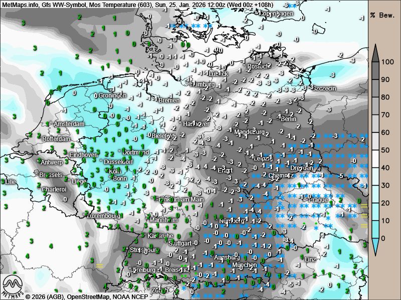Die Wetter- / Temperaturkarten für Samstagnachmittag sowie Sonntag- und Dienstagmittag nach GFS: