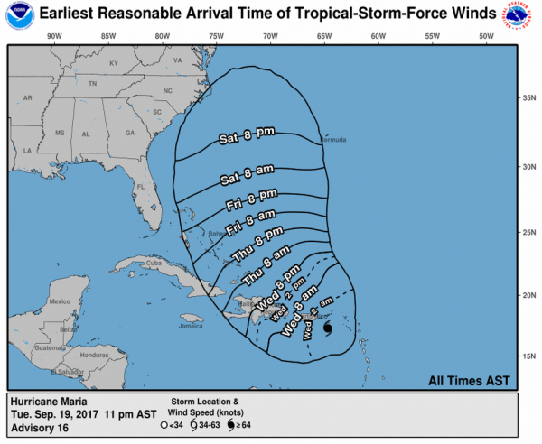 Im weiteren Verlauf ereicht der Hurrikan am Nachmittag und Abend (Atlantic Standard Time) die Dominikanische Republik und Haiti, am Donnerstag und Freitag dann Kuba und die Bahamas (s. Karte oben).