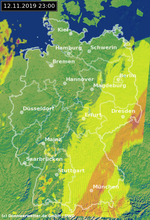 Radarbild von Dienstag, 12.11.2019 um 23.00 Uhr