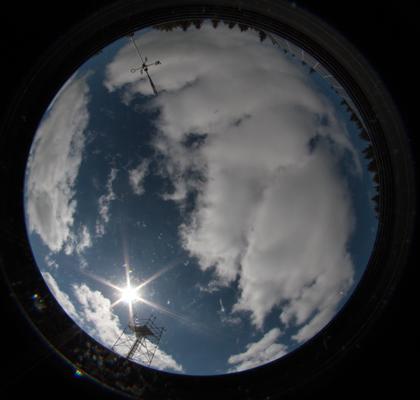 Das Bild zeigt den gestrigen Himmel mit Stratocumuluswolken in 360 Grad Fischaugenperspektive.
