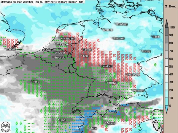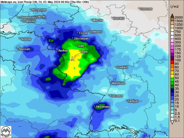 Trotzdem können die Regenfälle hier und da für einzelne Probleme sorgen - etwa Aquaplaning oder volle Unterführungen. Manche Wettermodelle, etwas UKWO des britischen Wetterdienstes, rechnen sogar mit 24-Stunden-Regenmengen über 100 l/m².