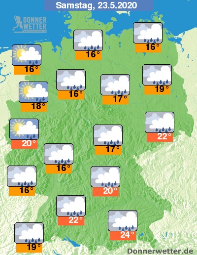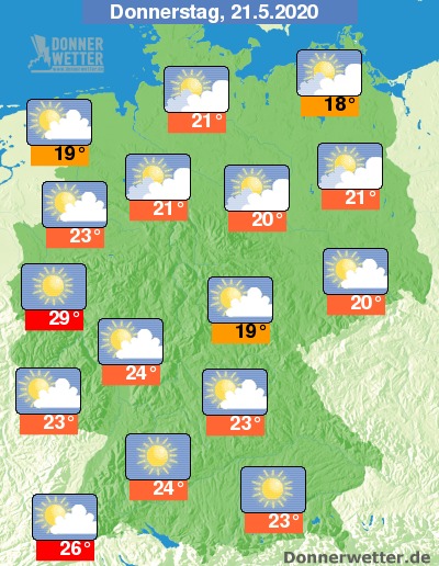 Die Temperaturen erreichen im Süden und Westen mit meist 25 bis 29 Grad verbreitet Sommernivau, am kühlsten bleibt es im Nordosten Deutschlands.