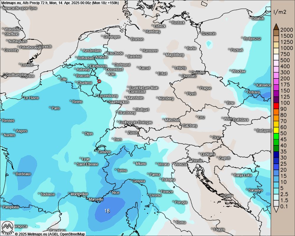 72-Stunden-Regenmenge ECMWF (14.04.)