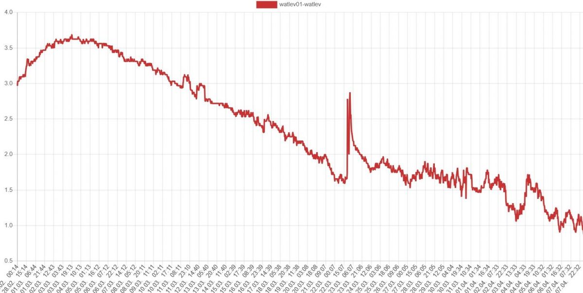 Verlauf Quellenpegel im Wetterpark (Ende Februar bis aktuell)