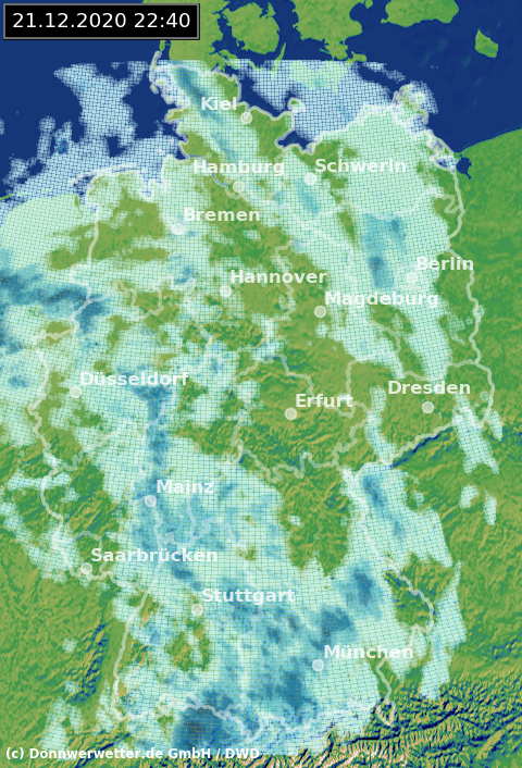Radarbild von Montag, 21.12.2020 um 22.40 Uhr