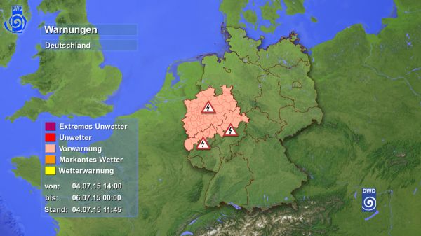 Im Westen kann es ab heute Nachmittag schwere Gewitter geben.