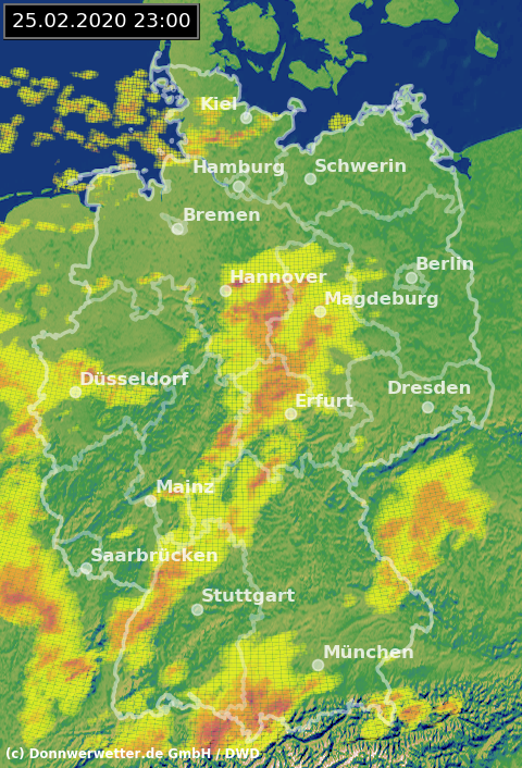 Radarbild von Dienstag, 25.02.2020 um 23.00 Uhr