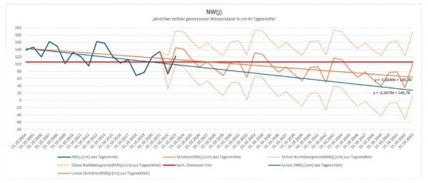 Jährliche Einschränkungen bestehen in 13 Jahren und mit 95 %iger Wahrscheinlichkeit in allen Jahren bis 2053 (Annahme: an 2 Tagen p. a.) Bei Einschränkungen wären allerdings höchstens 0,58 % der sonst versorgten Einwohner betroffen.