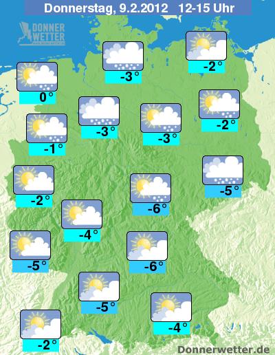 Tageshöchsttemperaturen im Süden um -5 Grad, im Norden und Westen um -2 Grad - damit dürfte der Donnerstag schon der wärmste Tag der Woche werden. Zu verdanken haben wir das dem Tief 'Lucina', das mildere, aber auch feuchtere Luft nach Deutschland transportiert. Diese sorgt aber vor allem im Osten auch für Schnee.