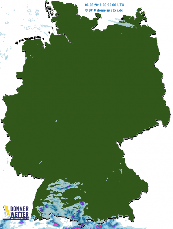 Am gestrigen Tag gab es nur schwache Regensignale im Süden. Sonst blieb es trocken. Auch im laufe des heutigen Tages ist mit wenig bis keinem Regen zu rechnen sein. Doch in der Nacht auf Mittwoch wird mit zunehmendem Gewitterrisiko auch die Regenwahrscheinlichkeit erhöht.