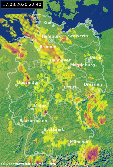 Radarbild von Montag, 17.08.2020 um 22.40 Uhr