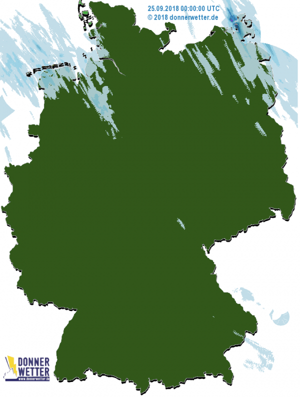 Das Radarbild zeigt aktuell zwar einige schwache Signale, diese deuten jedoch nicht auf Niederschlag. Sonst präsentiert sich der Himmel über dem Norden Deutschlands teils bewölkt, sonst verbreitet sternenklar oder nur leicht bewölkt. Im Spessart haben sich einige Nebelfelder gebildet.