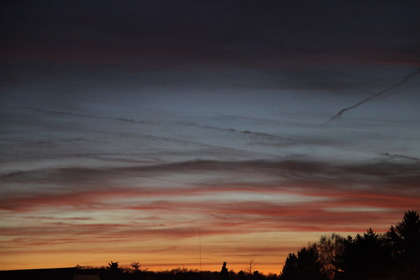 Im Norden und Osten unseres Landes setzt sich am Mittwoch das Hoch durch. Am Dienstag kann hier noch lokal etwas Sprühregen fallen. Die Sonne ist im Westen und Süden lokal schon zu sehen und es gibt dann schöne Abenddtimmungen, wie auf unserm Bild. Bis zu 10 Grad C tagsüber sind zu erwarten. Nachts gibt es Reif und leichten Frost.
