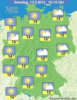Von Freitag auf Samstag breitet sich von Nordwesten kältere Luft aus. Die kalte Luft schiebt sich unter die warmen Luftmassen und löst teilweise kräftige Schauer und Gewitter aus. Am Samstag Nachmittag wird sich die kältere Luft schon über fast über ganz Deutschland ausgebreitet haben, das Wetter beruhigt sich, nur noch einzelne Schauer folgen. Die Temperaturen liegen verbreitet nur noch um 10 bis 12 Grad C.