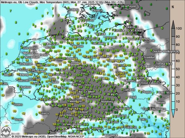 Die Wetterkarte nach GFS für den Montagmittag (12:00 Uhr):