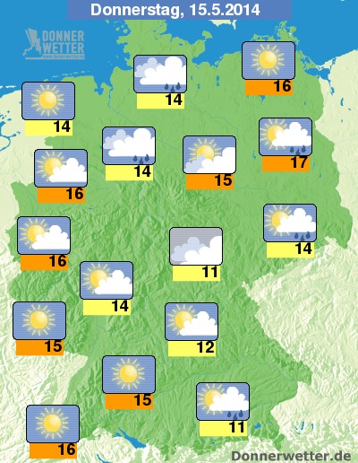Ein meist trockener Mix aus Sonne und Wolken, der vor allem in der Westhälfte auch heitere oder sogar sonnige Phasen im Gepäck hat, bestimmt dann den Donnerstag. Schauer gibt es bei Höchstwerten um 11 bis 17 Grad dann nur noch vereinzelt im Nordosten sowie entlang der Alpen.