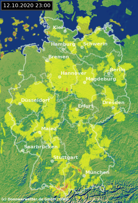 Radarbild von Montag, 12.10.2020 um 23.00 Uhr