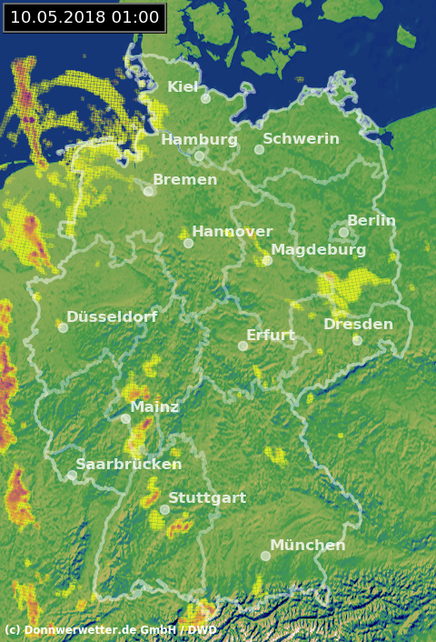 Radarbild von Donnerstag, 10.05.2018 um 01.00 Uhr